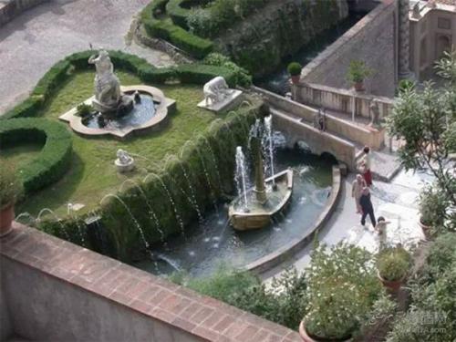 花园中,喷泉景观与茂盛的花草相得益彰,古树也郁郁葱葱。还有龙泉、卵形喷泉等,可以说是世界上,人工与自然完美结合的独一无二的景观。