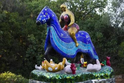 从罗马Aurelia大街一路向北,不容错过的第一站就是塔罗花园,那里保存着尼基•德•圣法尔(法国艺术家,让汤格利的妻子)的作品。雕塑的材质多样:玻璃、镜子、钢筋和混凝土,雕塑的灵感来源于塔罗牌人物,公园设计风格仿照意大利怪物公园(Bomarzo花园)与西班牙奎尔公园。