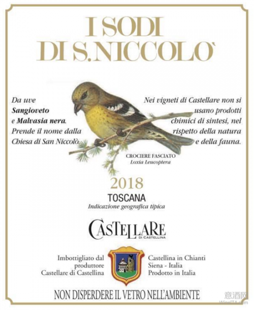 I Sodi di S. Niccolò 2018年份干红葡萄酒是意大利最早的超级托斯卡纳葡萄酒之一,酿酒所用葡萄均采摘自酒庄表现最佳的两个葡萄园,迄今为止,该酒款已经历40次收获季,酿成的葡萄酒均已上市,获得无数赞誉。1988年, I Sodi di S. Niccolò 1985年份成为意大利首支被评入《葡萄酒观察家》百大葡萄酒排行榜的酒款;1989年, I Sodi di S. Niccolò 1986年份再次上榜。为了庆祝其葡萄丰收40周年, I Sodi di S. Niccolò 2017年份葡萄酒推出了印有特殊酒标的限量珍藏版红酒,其中15升规格的葡萄酒在2021年12月2日的佳士得拍卖行拍卖会上拍出了破纪录的4655英镑,约5476欧元。这次拍卖的葡萄酒还附有一本压印的艺术书籍,其中收集了多年来出现在 I Sodi di S. Niccolò 葡萄酒酒标上的40只雀鸟,均由鸟类学家、艺术家约翰·古尔德(JohnGould)绘制。