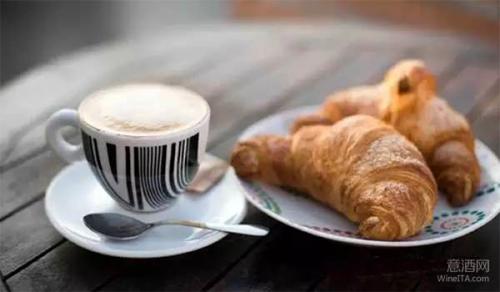 意大利人的早餐非常简单,他们通常会去吧里点一杯卡布奇诺加牛角面包(一种类似法国可颂面包),或者一杯咖啡Espresso加饼干就解决掉。