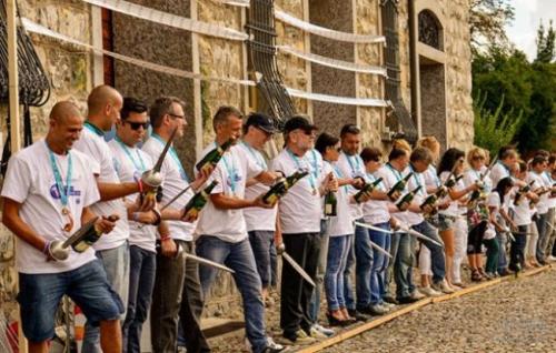 3.同时打开最多瓶数的香槟酒:487瓶 2015年9月15日,在瑞士Mendrisio餐厅举办的La Sciabolata di Momò活动中,数名侍酒师同时打开了487瓶香槟。 此外,2007年,意大利资产管理公司为了庆祝成立25周年,在意大利佩萨罗的亚德里亚体育馆同时打开了2778瓶Ferrari传统法(瓶中二次发酵)起泡酒,同样创造了世界纪录。