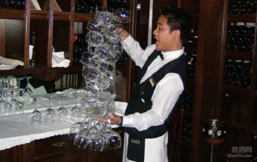 10.一只手能拿最多的酒杯:39个 2007年10月24日,一位来自菲律宾的小伙子雷蒙德·阿迪纳(Reymond Adina)在西班牙巴萨罗那(Barcelona)的一家餐厅中用一只手拿了39个杯子。