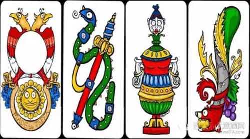 那不勒斯纸牌是由四种主要图案构成的: