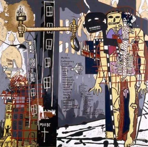 二战后世界艺术中心逐渐转移到纽约,宣扬自由,民主,平等的美国吸引和滋养着多元化现当代艺术的发展,巴斯奎特(Jean-Michel Basquiat)是不得不提的一个既具有天才个性和短暂传奇一生的美国涂鸦艺术家,同意大利超前卫 艺术3C在80年代为绘画的回归注入了新的生命力,探索出了新的指引导向。