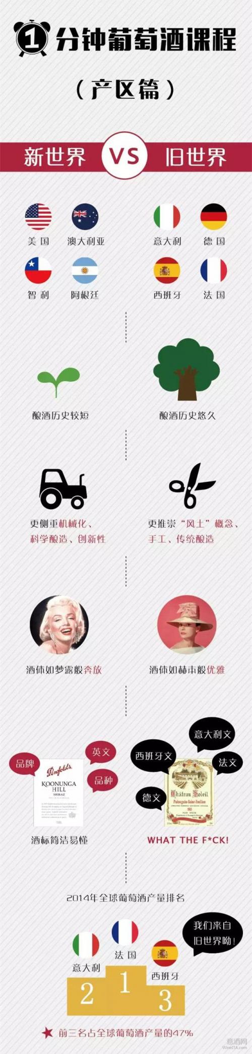 当我们谈论葡萄酒的风格时,一定会提到新世界和旧世界的概念,它们不仅在风格上大相径庭,在酿造技术上也有区别,今天就让我们用一张图来带你读懂新旧世界的概念。