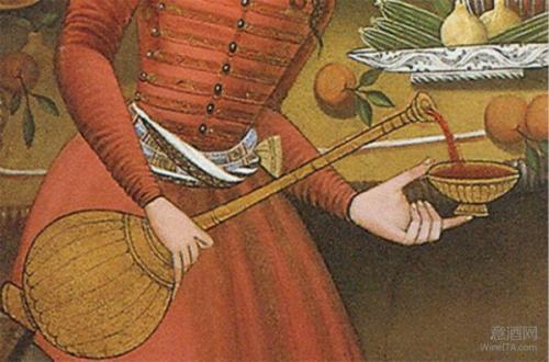 17世纪波斯(现名伊朗)萨非王朝的一个皇家宴会上正在倒葡萄酒。