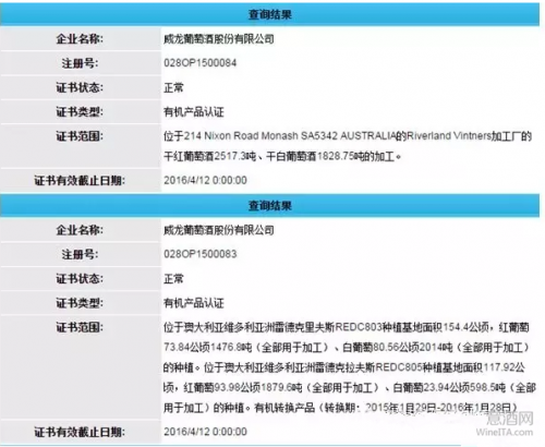 记者在深入调查中发现,威龙曾委托国内有机认证机构对澳大利亚酿酒葡萄基地及其酿酒葡萄和葡萄原酒进行有机认证。此前,记者曾经就此事联系到威龙葡萄酒股份有限公司董事长王珍海,询问为何通过国内相关机构在澳大利亚认证有机葡萄园,对方并未给予正面回答,只是表示,作为一家上市中的企业,有一些事目前还不方便公布,但是他一再强调,目前威龙关于有机的认证都是符合国家相关法律法规的。 再结合目前情况看来,威龙在国外葡萄园的布局并不是一朝而就,而是经过较长时间的准备。