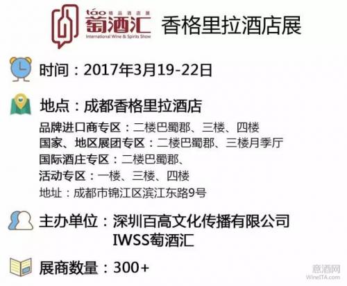 IWSS萄酒汇•香格里拉酒店展分为品牌进口商专区,国家地区展团专区,国际酒庄专区以及活动专区。2017年春糖,香格里拉酒店展更是360度全方位的升级,在展商规模,质量,品牌影响力和论坛活动深度和广度方面,将让专业买家有全新的观展体验:9大国家地区展团,来自30多个国家的300家参展商, 4天40多场的丰富多样的活动论坛,2017年的香格里拉将刷新春糖新高度!