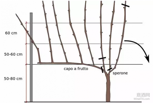 这种整形方式适用于日照时间不太充裕的葡萄酒产区,如法国的波尔多(Bordeaux)和勃艮第(Bourgogne)产区。在法国北部各产区也相当常见,现在在世界各地都有应用。
