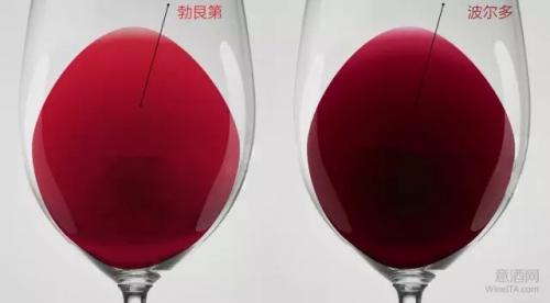 红葡萄酒:波尔多以赤霞珠和梅洛为代表,多呈现不透明的深紫色;勃艮第则以黑皮诺为代表,呈明亮而清澈的宝石红色。