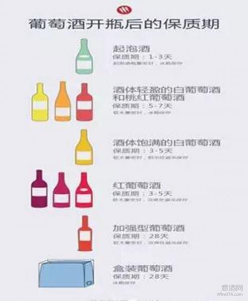 大都数白葡萄酒和桃红葡萄酒开瓶后如果用软木塞密封,放入冰箱内保存,保质期在一个星期左右(5到7天)。开瓶后的第一天,这些葡萄酒只会发生轻微的氧化,轻微到你几乎无法察觉。此外,有些富含矿物质风味的葡萄酒甚至会因轻微氧化而口感变得更好,比如说意大利北部所产的灰皮诺、法国的雷司令和长相思等。