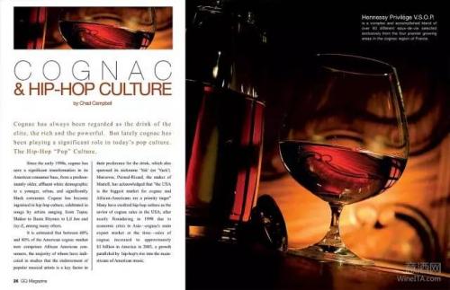 嘻哈文化是美国干邑热潮的重要助推力量,黑人歌手为了把自己跟喝威士忌的白人区分开,于是大力标榜其它酒饮——包括香槟和干邑(占美国人口比例13%的黑人喝掉美国市场超过60%的干邑)。而最有影响力的嘻哈天皇Jay-Z不仅爱香槟,也好干邑,不仅把各种干邑拍进MV,还参与创立了干邑品牌D'USSE。