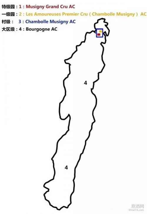 上述四款葡萄酒的葡萄,均源自相对应的葡萄园,对于大区级别,基本上可以来自该村以外,或者是整个大区内任何葡萄园的葡萄混酿。特级园有自己的原产地保护命名AOC;一级园隶属于所在的村级的AOC;大区也有大区级的AOC。各级的质量和价格都十分鲜明,生产Musigny GC,葡萄必须来自该葡萄园,生产村级Chambolle Musigny或Bourgogne级别,基本上不会用一级园和特级园的葡萄,除非该年出品特别差,依次降级处理。