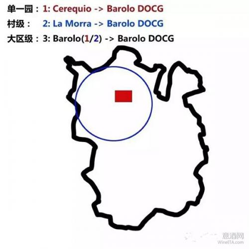 1. 个别酒庄或生产商,他们的产品系列可能有着和勃艮第分级系统相似的各种等级,单一园的产品就是来自上述情况下定义的特级园,村级的产品来自某条村譬如La Morra村,大区级则为大区内混酿。