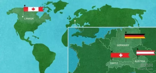 冰葡萄酒虽然出身是“德系”,但是发扬光大却是在以冰雪著称的加拿大。由于特殊的地理环境和气候,加拿大几乎年年可以酿造冰酒,这一点着实让德国、奥地利等冰酒发源地国家眼红。