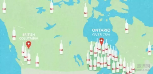 加拿大有两个符合VQA标准的冰葡萄酒产区:安大略省(Ontario)和英属哥伦比亚省(British Columbia),尤其是安大略省的尼亚加拉(Niagara)半岛是加拿大最大的冰酒产区,地处北纬43°,受安大略湖和尼亚加拉断崖的共同影响,非常适合生产冰酒。现今,安大略冰酒名声鹊起,与屡次在各种国际大赛中赢得最高奖项密不可分。