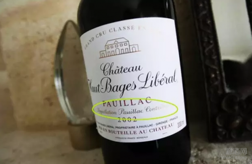 AOC : Appellation d'Origine Controlee,原产地命名控制(旧分级体系),准确含义应该是“经检查、核实(Controlee)后达到标准的原(Origine)产地(Appellation)”。AOC 有着严苛的生产标准,包括葡萄品种、种植密度、单位面积产量、最低酒精度等。在具体使用过程中,Origine 一般会替代成具体的产区名,如下图的 Appellation Pauillac Controlee。
