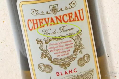 如果一款酒的酒标像上图这样标有 VdF 的标识,则说明它的酿酒葡萄可以来自法国任意产区,而酒标上一般不会具体标明其产地。