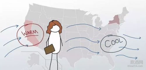 不同气候下的酿酒葡萄,所酿造出来的酒有着十分明显的差异,就像是凉爽气候下的葡萄所酿的酒带有清脆鲜爽的特点,而炎热气候下的葡萄所酿出来的酒有着热带水果的香气特征。今天我们要讲的就是海洋性气候对葡萄酒的影响。