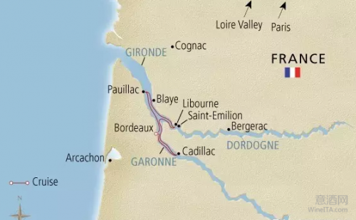 波尔多位于法国西南部阿坤廷地区(Aquitaine),北部靠近大西洋欧洲沿岸,被加龙河(Garonne)、多尔多涅河(Dordogne)以及纪龙德河(Gironde)分为左岸、右岸以及两海之间地区(Entre-Deux-Mers)。