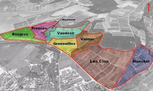 瓦慕(Valmur)位于克洛的西面,该园地的东面是福迪斯(Vaudesir)和青蛙园(Grenouilles)。瓦慕面积是 11.04 公顷,为 11 个生产者共同所有。它和福迪斯一起,被认为是夏布利特级园中仅次于克洛的园地。这片园朝向相对特殊,风比较难吹到,因此夏天比较闷热,但是冬天却也比较暖和。园区内石多土少,产出的酒酒体饱满、坚实,或者说有点锐利,果香不怎么突出,但是清冽、有骨架感。