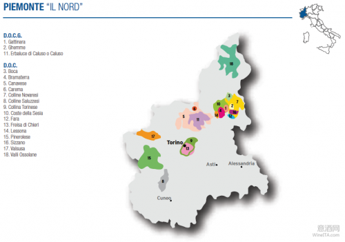 戛第纳拉保证法定产区(Gattinara DOCG)是意大利以种植内比奥罗葡萄(Nebbiolo)为主的7个保证法定产区(DOCG)之一,位于上皮埃蒙特(Alto Piemonte)的Vercelli省,1967年被认定为法定产区(DOC),1990年成为保证法定产区(DOCG)。Gattinara产区地处阿尔卑斯山脉第二高峰罗莎峰(Monterosa)脚下,土壤中含有大量的火山砾石和高粘土,具有丰富的矿物质,适合内比奥罗葡萄(Nebbiolo)的生长,并能够酿造出香气浓郁的葡萄酒。