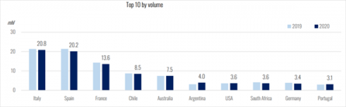 上图:2020年葡萄酒出口量前十大国家