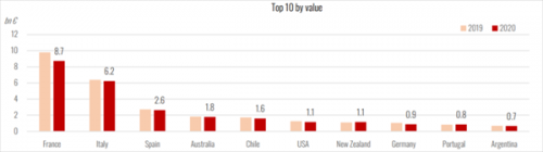 上图:2020年葡萄酒出口额前十大国家