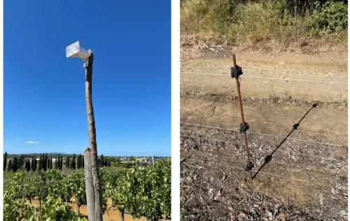 左:用大喇叭播放猎狗的叫声驱赶狍;右:用电网阻止野猪进入葡萄园(鸣谢托斯卡纳多菲Dolfi酒庄提供现场图片)