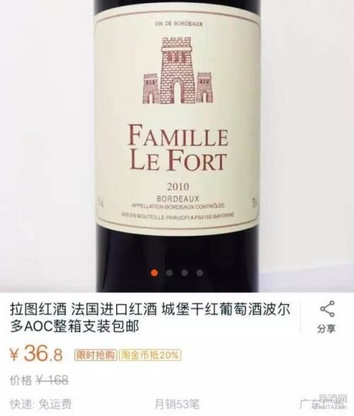 可是等我下单后,把图片发给懂葡萄酒的朋友堂哥,却换来了一顿嘲笑,他告诉我,我买到的都是些“山寨酒”“傍名牌酒”,还说我是个贪小便宜的人,怎么会在淘宝上购买葡萄酒呢?面对朋友的嘲笑,我真是又羞又气,我作为标准的双十一剁手党,就只是想在打折的季节趁便宜多买点酒,可是现在我只想着把淘宝卖假酒的腿打折.....