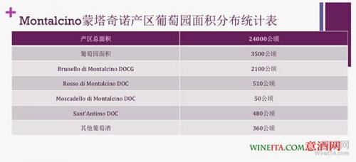 蒙塔奇诺的布鲁耐罗保证法定产区(Brunello di Montalcino DOCG)以历史悠久的蒙塔奇诺(Montalcino)小镇为中心,距离锡耶纳(Siena)以南大约30公里,总面积为24,000公顷,其中葡萄园面积约为3500公顷。