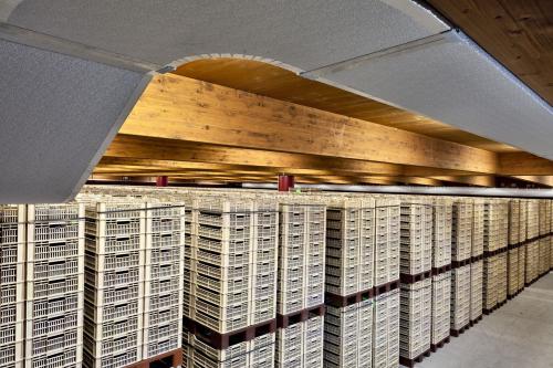 在酒庄里,我们看到了第一批采收下来的葡萄被运抵风干室,随即开始风干。坎帕诺拉酒庄有两个大型风干室,基本都由电脑监控的温度湿度。在风干室的上方,有活动窗板根据不同湿度来调节开启的角度。此外,多台大型风扇开足马力,为风干室带来持续流动的空气。在接下来的90-120天中,这些果串要在保持健康的前提下自然脱水40%左右,才能进入下一步的酒精发酵过程。